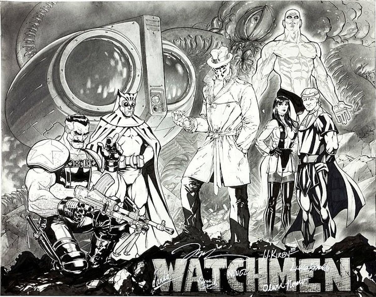 Per festeggiare l'evento, Jim Lee, Chief Creative Officer della DC Comics e uno degli artisti più amati del comicdom, ha realizzato insieme ad alcuni colleghi un artwork ispirato al fumetto originale, nel quale appaiono il Comico, il Gufo Notturno, Rorschach, Dottor Manhattan, Spettro di Seta e Ozymandias; sullo sfondo, la mostruosa creatura extraterrestre architettata da quest'ultimo e la navetta Cleto.Queste le parole dell'artista di Batman: Hush, che - in lieve ritardo - nella giornata di ieri ha condiviso l'illustrazione firmata insieme a J.J. Kirby, Carlos D’anda e Eddie Nunez: