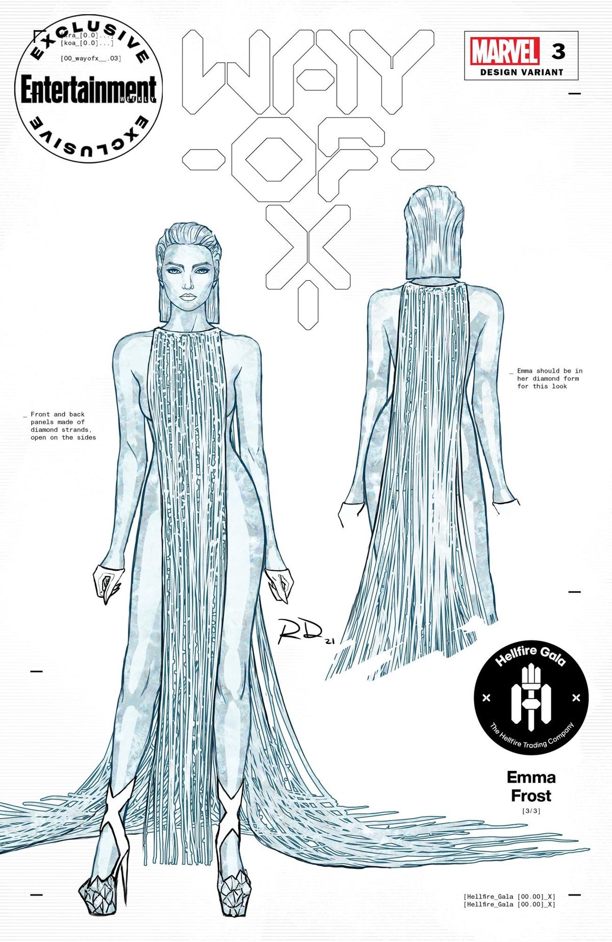 Dauterman ha spiegato che il progetto è nato con una serie di chiamate in Zoom con i vati team di sceneggiatura e gli editor delle serie dedicate agli X-Men e agli altri mutanti, grazie a cui ha potuto raccogliere una serie di suggerimenti e di idee sui costumi. Il risultato è una vera e propria collezione di moda, che vi mostriamo nella gallery che trovate qui sotto, con i commenti dell'artista in didascalia.Dauterman - In generale, ho pensato che l'estetica del Gala sarebbe dovuta essere una versione fashion dei costumi degli X-Men, una moda mutante e non umana. Quindi ho studiato un po' di riferimenti d'altra moda cercando di pensare a cosa sarebbero diventati quegli abiti nella versione mutante. Ho preso ispirazione da collezioni di Alexander McQueen, Iris van Herpen, Balmain, Moschno, Givenchy, Versace, Gaultier, Gucci e tanti altri ancora, oltre che dai vecchi costumi dei singoli personaggi.