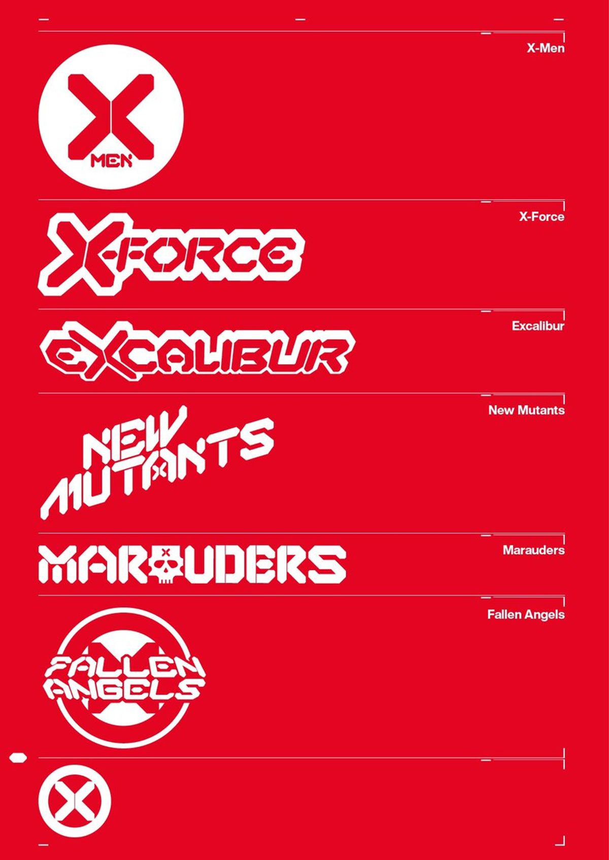 Per quanto riguarda quelli di Dawn of X, sono molto contento del titolo della serie X-Men e particolarmente affezionate al modo in cui la X è stata incorporata in quello di New Mutants. Anche il titolo di Marauders è stato divertente da realizzare, per l'inclusione del teschio.
