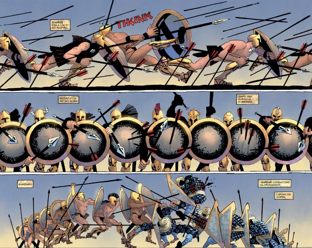 Il re persiano Xerxes vuole conquistare il mondo conosciuto per vendicare la sconfitta di suo padre Dario creando un vastissimo impero. Intanto, dalla piccola Macedonia avanza verso Oriente un condottiero come mai se ne erano visti prima. Dove i persiani vincevano grazie al solo numero, ora vince l'intelligenza e l'acume di Alessandro il Grande, che avanza fino a conquistare il mondo intero!Finalmente i cinque capitoli della nuova saga di Frank Miller vengono raccolti in un volume cartonato a colori formato 30x23,5 cm, per un'esperienza di lettura continuativa e unica!