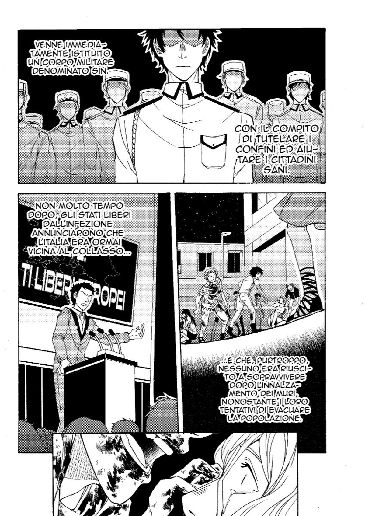 L’esordio della giovane autrice è un’intensa storia che racconta le relazioni interpersonali di personaggi che, costretti a vivere in una zona di quarantena abbandonata a se stessa, sopravvivono come possono, mettendo se stessi al primo posto pur cercando di non perdere la propria umanità.“A volte la vita è surreale,” racconta sul suo profilo Facebook Lucio Staiano, Fondatore e Responsabile di Shockdom. “Avevamo già pianificato per Marzo 2020 l'uscita di questo manga. Quando l'abbiamo confermato nel piano editoriale e dopo qualche mese annunciato, non potevamo neanche lontanamente pensare che sarebbe uscito proprio in un contesto simile. Il manga ha, come antefatto iniziale, un'Italia devastata da un'epidemia virale, isolata con le armi dagli altri paesi. I pregi del fumetto per fortuna sono altri, una storia avvincente, la descrizione sociale e come gli uomini affrontano la tragedia. Però la coincidenza è veramente incredibile.”