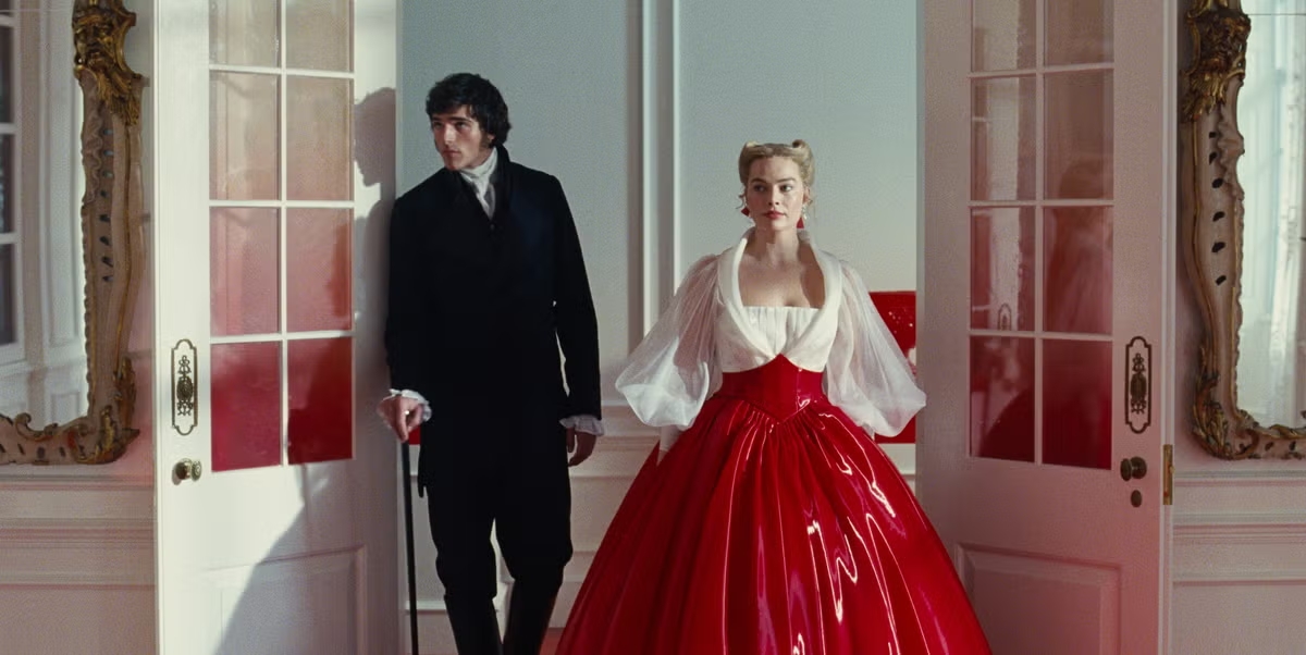 La caratteristica più evidente e memorabile del nuovo Cime Tempestose di Emerald Fennell è, indubbiamente, il suo lusso estetico. Questa ricchezza inventiva negli ambienti e nei costumi, sottolineata nella pubblicità del film già prima dell’uscita, non è però secondaria ma il punto politico del film. L’intento dichiarato delle particolari scenografie di Suzie Davies (di cui infatti è stata realizzata una set visit per Architectural Digest), più che di fare una versione storicamente accurata dell’opera di Emily Brontë (per quanto possa esserlo un adattamento di un romanzo di finzione), è proprio quello di dare un’impronta fortemente autoriale alla storia. Dall’uso del linoleum rosso per i pavimenti di casa Linton alla stilizzata decadenza gotica della residenza di Heathcliff, passando per l’eccentrico modernismo dei costumi indossati da Margot Robbie, l’impresa estetica in Cime Tempestose ha la funzione primaria di mettere lo spettatore, al pari dei personaggi, nella posizione dell’osservatore desiderante: quello che guarda qualcosa che trova desiderabile e vorrebbe possedere (che è la premessa di tutte le nascenti core aesthetics).