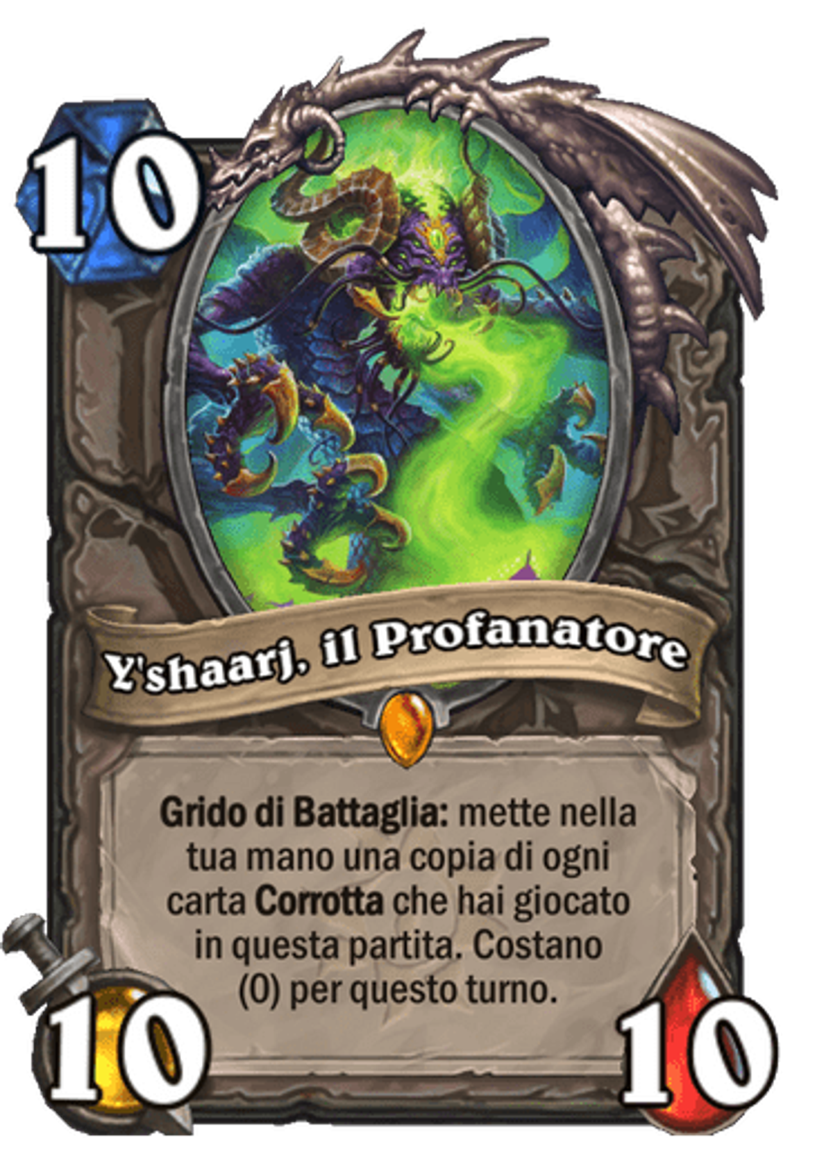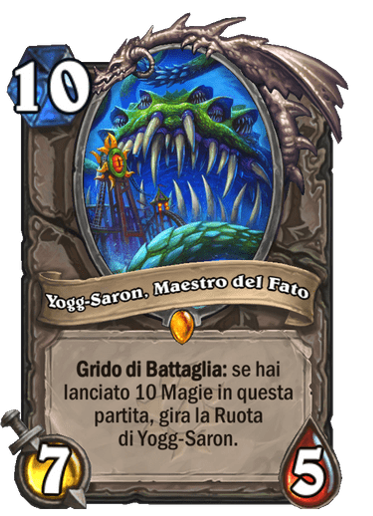 Prima di lasciarvi alla gallery con le nuove carte, ci permettiamo una piccola postilla fuori contesto sottolineando quanto il lavoro di ristrutturazione di Hearthstone messo in piedi da Blizzard stia davvero andando incontro ai giocatori, mettendo sul piatto non solo ricompense mirate e più accessibili, ma anche un'idea programmatica che in questi mesi sta tenendo sempre attiva la community, tra eventi settimanali, avventure mensili, aggiornamenti alla Battaglia (che noi adoriamo), Arene Bi-classe, bundle esclusivi a tempo limitato e servitori dorati nascosti. La speranza è quella di vedere il Team 5 sempre così attivo sul gioco, perché è quello che vuole la community, come dimostrato dai 100.000 spettatori unici durante la diretta di ieri su Twitch e le 700.000 visualizzazioni in meno di una giornata. Teniamo le dita incrociate e, nel dubbio, porgiamo i nostri omaggi a Yogg-Saron.