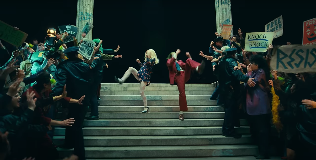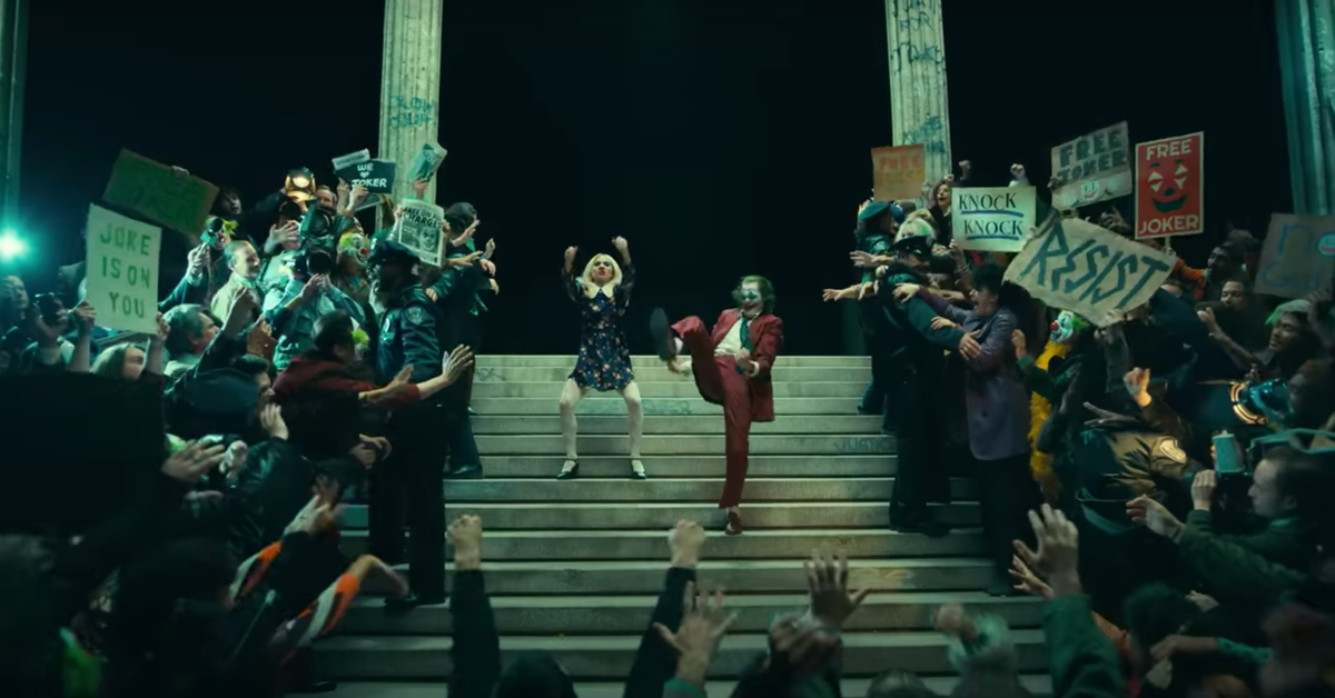 Un altro numero musicale, con Lee Quinzel che canta "The World is a Stage" come abbiamo visto in una serie di video trapelati dal set l'anno scorso, è stato completamente tagliato dal finale. Nel montaggio definitivo vediamo i due personaggi che parlano sull'iconica scalinata e si dicono addio, ma nei piani iniziali Lady Gaga avrebbe dovuto scatenarsi con una esibizione che si sarebbe conclusa con l'arresto di Arthur (a quanto pare, organizzato proprio da lei).
