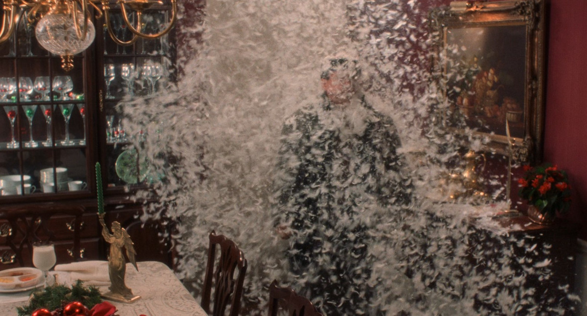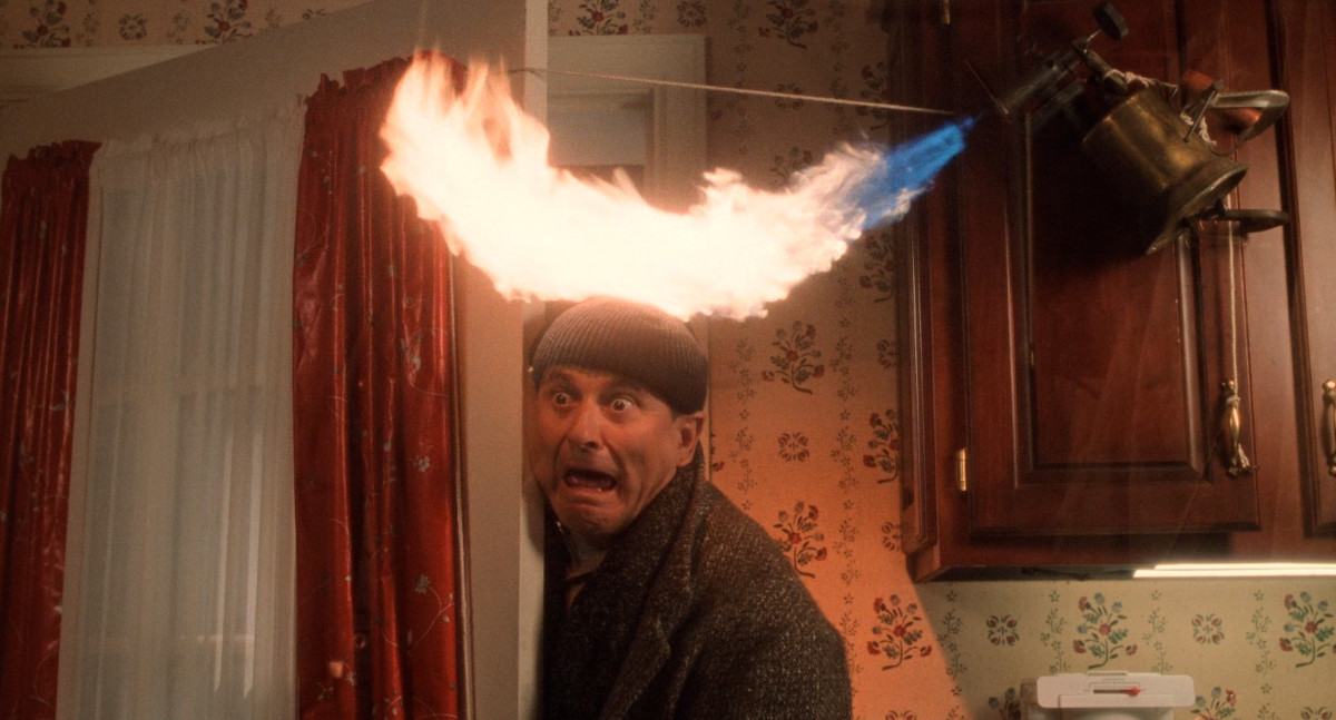 C’è chi vi parlerà appunto del Natale e del suo proverbiale spirito, chi dell’incredibile senso di libertà che si respira per tutto il secondo atto, quando Kevin è padrone della sua casa e della sua vita pur senza esserne equipaggiato, e di conseguenza fa un sacco di cose stupide che chiunque di noi avrebbe fatto nella stessa situazione. C’è chi si ricorderà quel bizzarro accenno slasher legato al signor Marley, il South Bend Shovel Slayer, una storyline che a un certo punto ha una sterzata bruschissima e diventa uno dei momenti cinematografici più dolci degli anni Novanta. Magari ci sarà chi è cresciuto con il terrore della stufa in cantina, uno spunto kinghiano minuscolo ma essenziale alla crescita del protagonista.In realtà, però, dati scientifici inattaccabili rivelano che la maggior parte della gente risponderà “Mamma, ho perso l’aereo è quel film con le trappole”. E questo nonostante la, appunto, “parte con le trappole” duri meno di mezz’ora, in un film di un’ora e tre quarti. Quello che fa Kevin per difendersi da Harry e Marv, le torture e il dolore che infligge ai due aspiranti rapinatori, è uno dei più clamorosi casi di “sottogenere improbabile che si infila a sorpresa in un film completamente diverso”: da quando i due provano a entrare in casa McCallister, Mamma, ho perso l’aereo diventa di fatto uno home invasion per tutta la famiglia, un film di buoni sentimenti e ferri da stiro in faccia, violento quanto un cartoon con Road Runner e Wile E. Coyote – e non provate a dire che quelli non erano violenti.