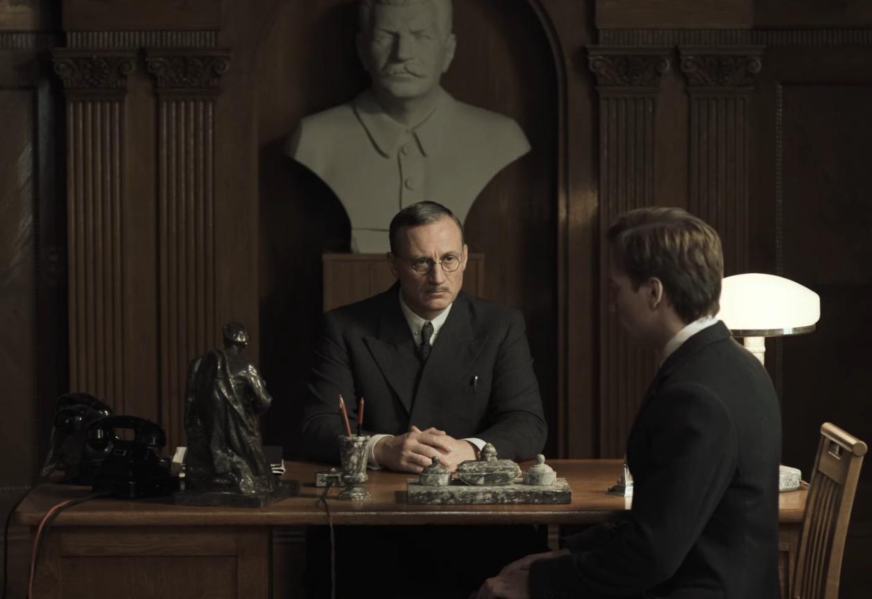 Ciò che rende di grande livello e impatto Due procuratori è però il modo in cui il regista ucraino mette in scena quella storia, il modo in cui dà forma e colore a quell’abisso. Innanzitutto con una struttura che ricorda la grande narrativa russa (e che è un po’ il leitmotiv del cinema post-sovietico), fatta di macro-sequenze giustapposte che hanno l’ambizione di immaginare e costruire un mondo, più che semplicemente raccontarlo, dentro cui emergono poco alla volta — tra un dialogo e un’attesa — le questioni profonde di quell’universo. Poi con le immagini desaturate, quasi monocrome, di Oleg Mutu, accese qua e là da sfumature o toni più marcati, che restituiscono non solo l’atmosfera politica della Russia dell’epoca, ma soprattutto quella emotiva generata dalla paura.