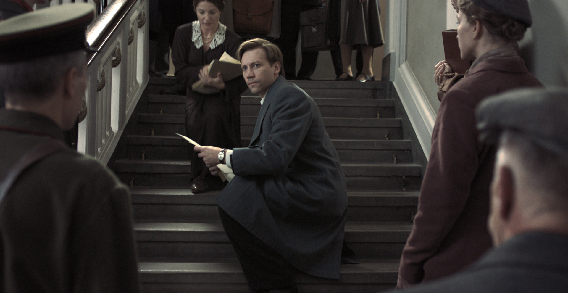Ma soprattutto il lavoro di Loznitsa diventa grande attraverso la ricerca, la scelta e il design delle scenografie di Jurij Grigorovič e Aldis Meinerts che, insieme al formato 4:3 e a quei colori lividi, riescono a mostrare un mondo che è, di fatto, una prigione: fatto di stanze e spazi chiusi senza via d’uscita, batterie d’allevamento in cui la burocrazia vieta ogni moto personale, ogni possibile libertà, incutendo paura con gli sguardi, i toni delle parole, i minimi movimenti del corpo. Gabbie dove tutto può spalancare le porte dell’incubo (la cella di Stepnjak ha sulle pareti le stesse ferite e piaghe che l’uomo porta sul corpo). Di questo va dato grande merito anche agli attori, capeggiati da Aleksandr Kuznecov, bravissimi a recitare sempre tra le righe, spesso sotto.