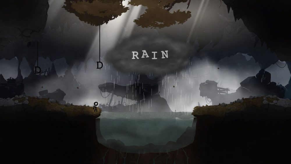 Typoman - screenshot[/caption]Nel gioco che della lettera fa la sua chiave di volta la storia non viene raccontata tramite parole, ma tramite spesso emozionanti brevi scene, e la sua bellezza sta nel non volersi infilare dappertutto, lasciando tante domande, dalla sua genesi ad alcuni passaggi del suo progredire. E' comunque quanto basta ad affascinare il giocatore, quasi come in quelle produzioni che puntano tutto sull'atmosfera, ma Typoman è soprattutto un platform costellato di piccoli enigmi, e risiedono lì le sue migliori qualità, quando si incontrato situazioni da risolvere mettendo insieme le lettere trovate sul percorso, prosciugando una pozza, componendo la parola “drain”, sollevando un ascensore, scrivendo “lift”, facendocisi scudo dal male con la parola “life”. Gli sviluppatori sono stati abili nell'inserire nel gioco una vasta serie di situazioni, per la maggior parte diverse tra loro, nelle quali il giocatore deve spremersi le meningi per andare in avanti. E quando veramente non ce la fa a generare la soluzione, può accedere ad un rapido e chiaro aiuto, tramite il GamePad, anche se ovviamente il consiglio è quello di ricorre il meno possibile a tale supporto, per non rompere l'equilibrio del gioco.