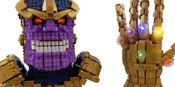 Il busto di Thanos e il Guanto dell'Infinito ricreati con i mattoncini LEGO