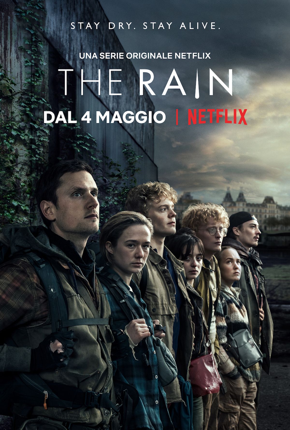 The Rain è creata da Jannik Tai Mosholt (Borgen, Rita, Follow the Money), Esben Toft Jacobsen (Il grande orso, Beyond Beyond) e Christian Potalivo (Dicte, The New Tenants, Long Story Short). La serie vede nel cast la partecipazione di Alba August (Reliance, Jordskott e Unga Astrid), Mikkel Boe Følsgaard (Royal Affair, Il Testamento), Lucas Lynggaard Tønnesen (Tidsrejen, Department Q: The Keeper of Lost Causes), Lars Simonsen (The Bridge, Brotherhood), Iben Hjejle (Dicte, Alta fedeltà), Angela Bundalovic (Dark Horse, Blood Sisters), Sonny Lindberg (Il Testamento, Anti), Jessica Dinnage (The Guilty – Il Colpevole, The Man), Lukas Løkken (One-Two-Three Now!) e Johannes Kuhnke (Force Majeure).Il mondo così come lo conosciamo non esiste più. Dopo sei anni da quando un virus brutale portato dalla pioggia ha sterminato quasi completamente l’intera popolazione scandinava, due gemelli danesi abbandonano la sicurezza del loro bunker per andare alla ricerca di tutti i resti della civiltà scomparsa. Ben presto si uniscono a un gruppo di giovani sopravvissuti per intraprendere un viaggio pieno di pericoli attraverso la Scandinavia ormai desolata, alla ricerca di qualsiasi segno di vita. Liberati dal loro passato comune e dalle regole della società, tutti i membri del gruppo sono liberi di essere ciò che desiderano. Nella loro lotta per la sopravvivenza, essi scoprono che anche in un mondo post-apocalittico esistono ancora amore, gelosia, l’avanzare dell’età e molti dei problemi che pensavano di aver lasciato alle loro spalle con la scomparsa del mondo che un tempo conoscevano. Chi sarai diventato quando arriverà la pioggia?